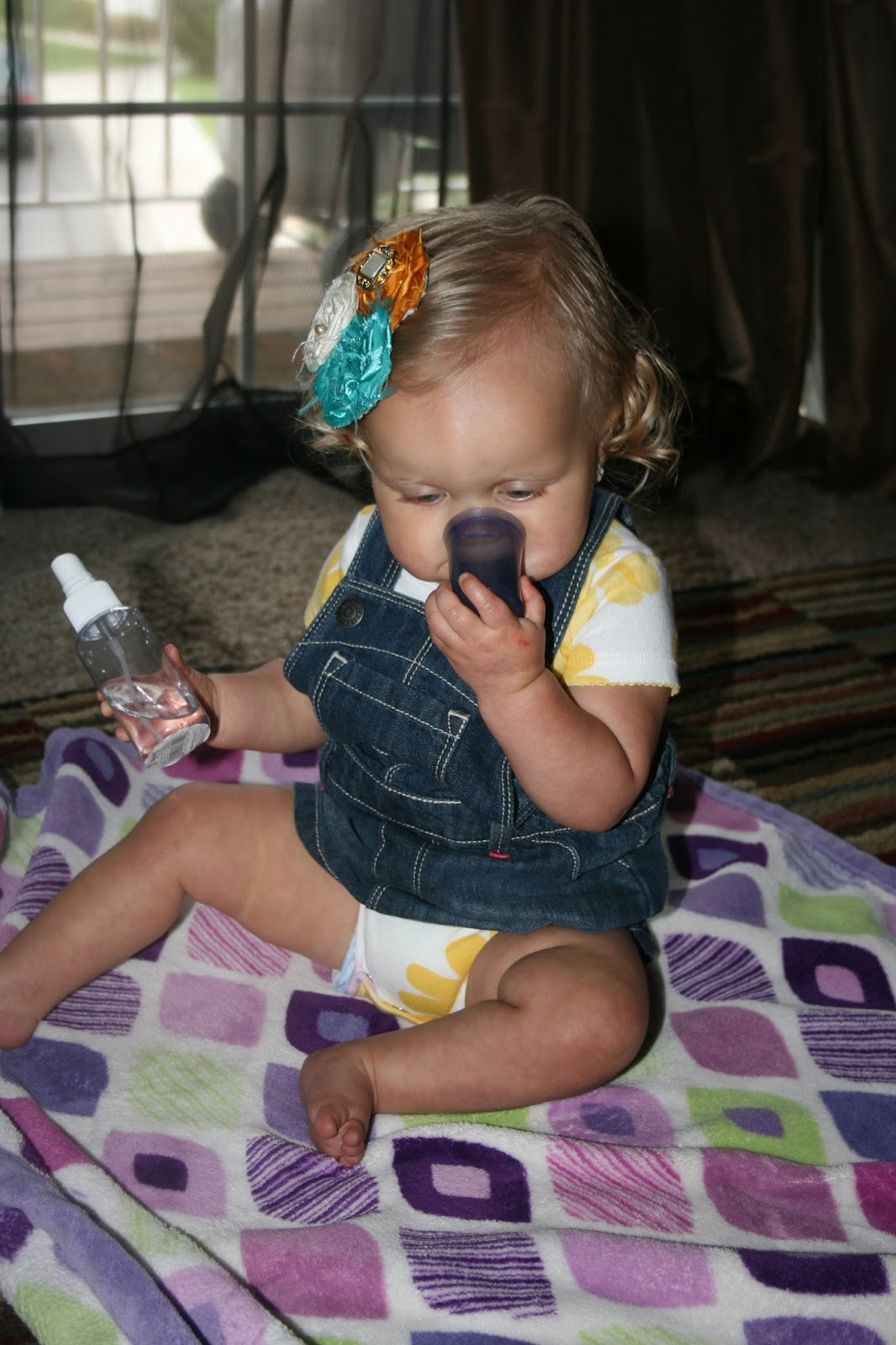 | She has a new obsession with putting lids on and off of things, she sat and played with this little bottle for almost 30 min! |